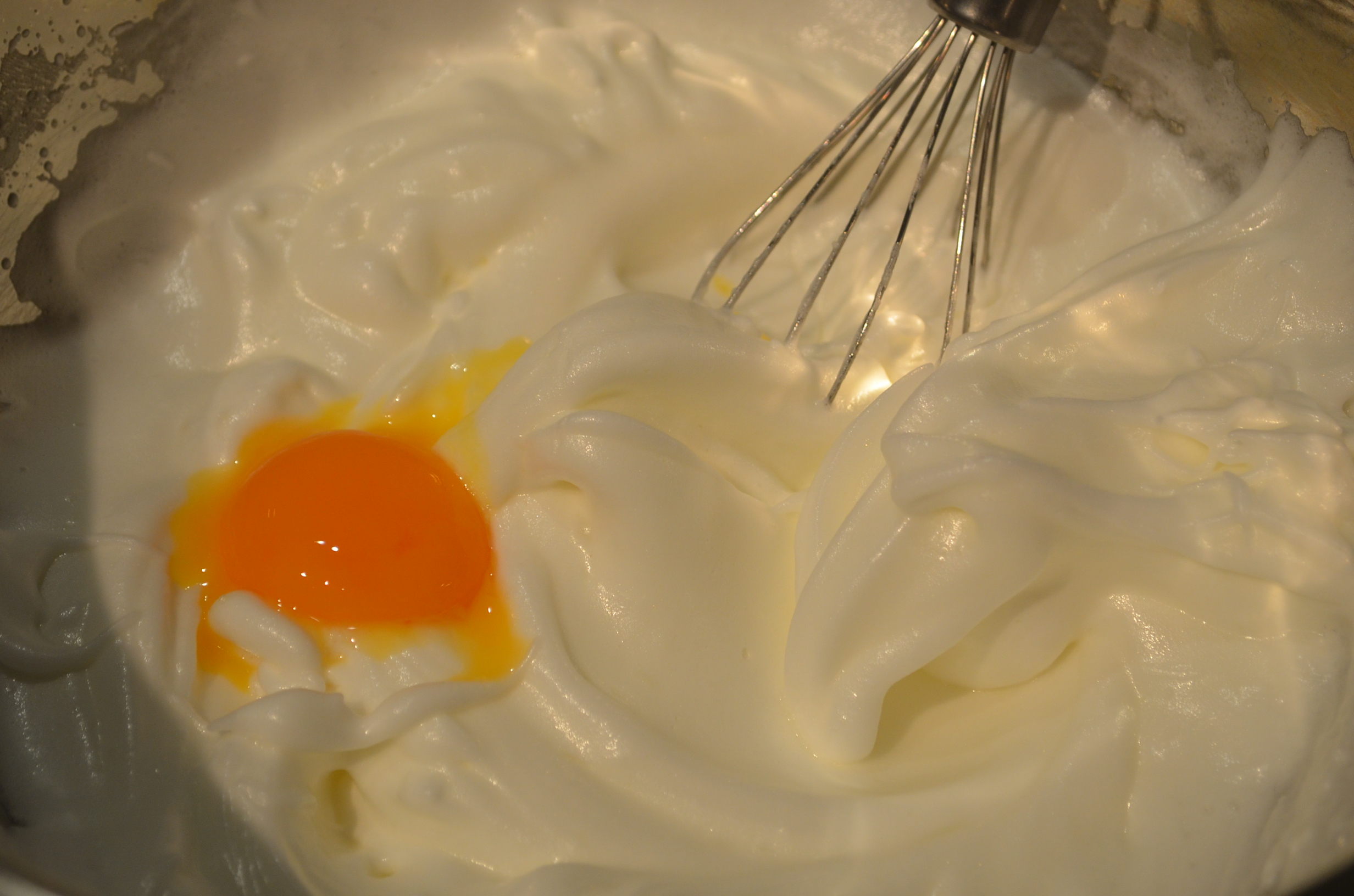 Add egg yolk one at a time