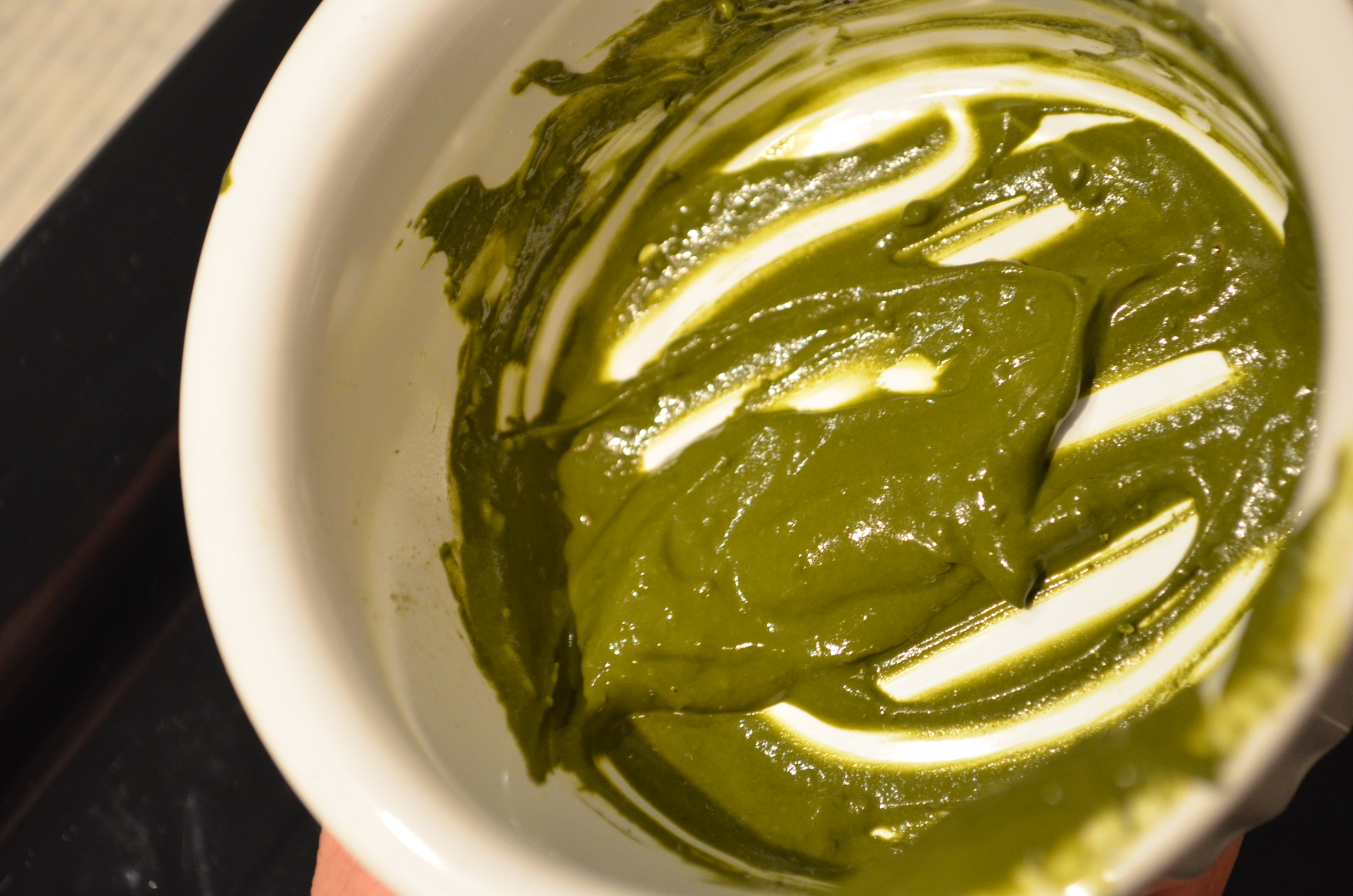 - Add hot water to green tea powder. Stir till smooth. Cover and set aside. Dissolving the green tea extracts the flavor more than just mixing it with the flour like most of the recipes.