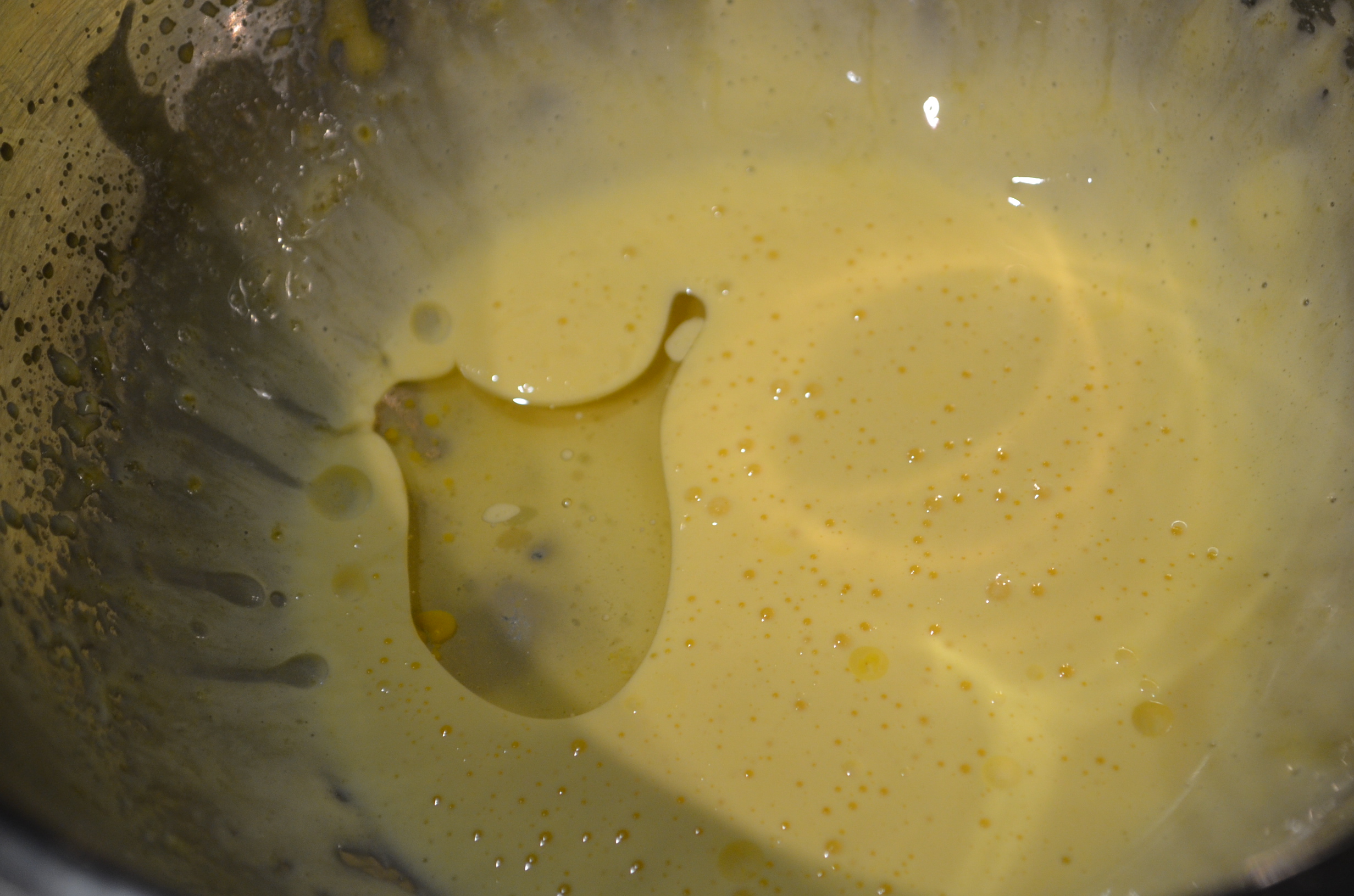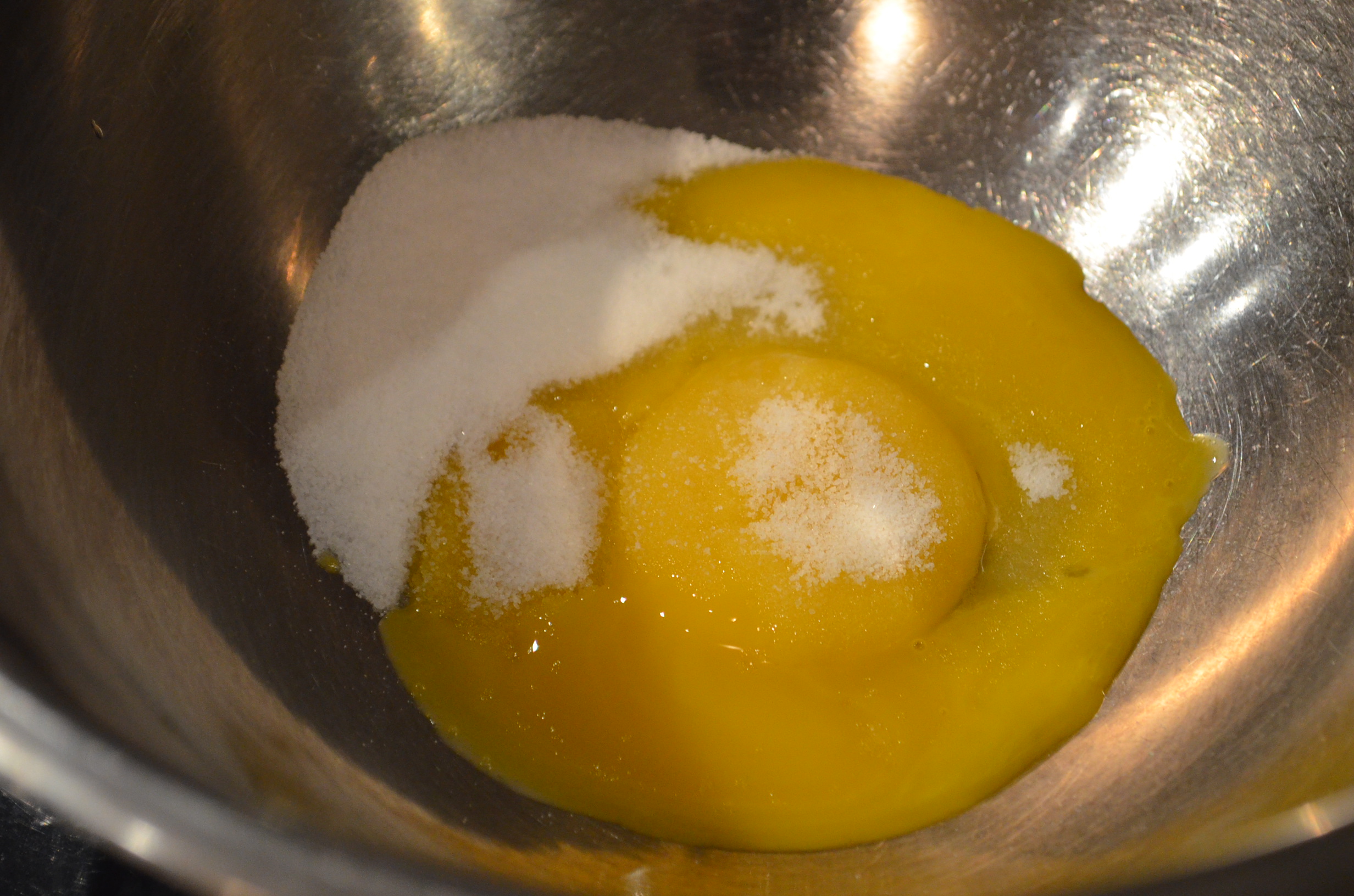 - Whisk egg yolks with 10g caster sugar till thick and pale. Add corn oil. Whisk till thick. Castor sugar dissolves faster than granulated white sugar because it is finer. So you don’t need to whisk the egg whites longer to get the stiff peak stage.