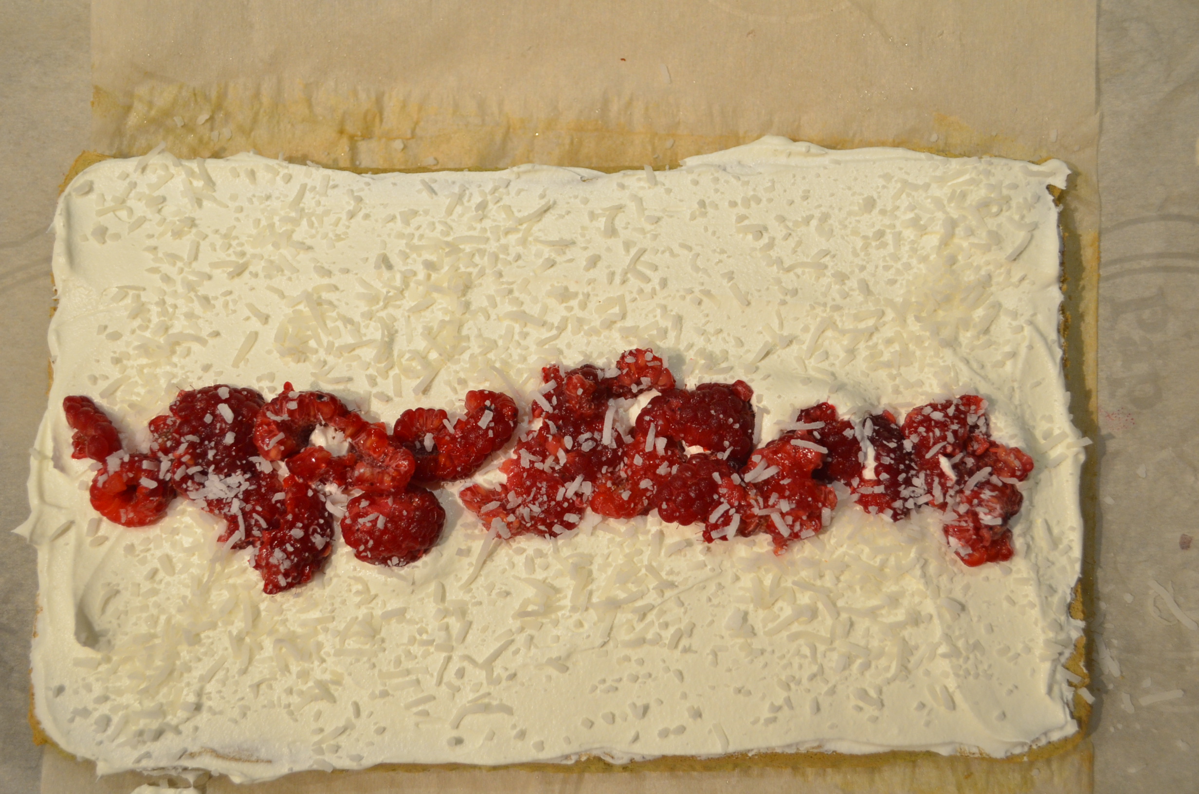 To make filling: Whip cream till thick enough to hold its shape. Add green tea powder. Whisk till thick enough to stick to whisk. You can also remove green tea powder and just have plain whipped cream like what I did. I also added fresh fruits and sprikled them with shredded sweetened coconut.