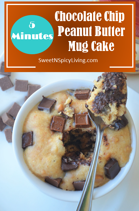 - No Bake: 5 Minutes Chocolate Chip Peanut Butter Mug Cake
