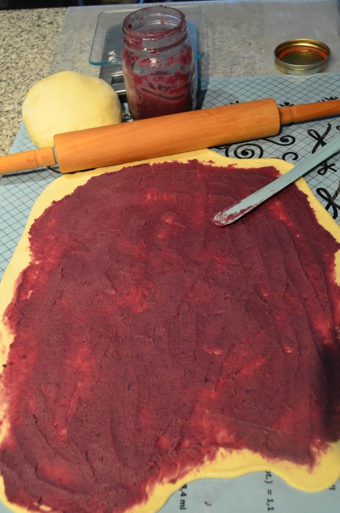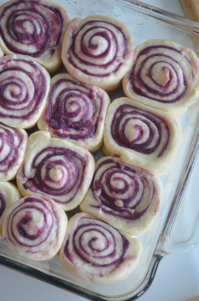 - Shape – Knead the dough and use a rolling-pin to flatten it. Spread Purple Yam Jam on top of the dough. Starting from the edge, roll the dough to form a log or 12-inch long. Cut into 12 equal pieces. Arrange each pieces in the baking pan.