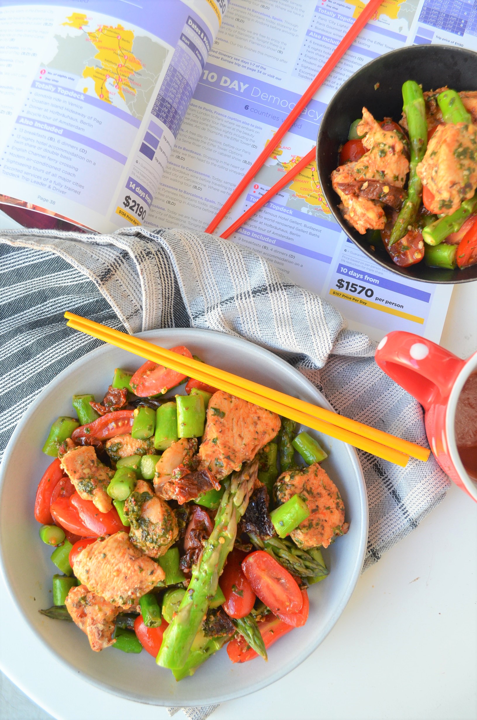 Published at 1632 × 2464 in [VIDEO] One Pan Pesto Chicken with Asparagus and Tomato