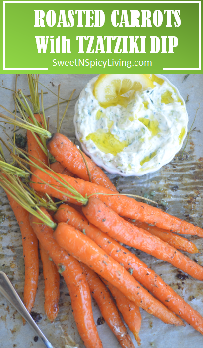 ‘Garlic Butter Roasted Carrots with Tzatziki Dip’
