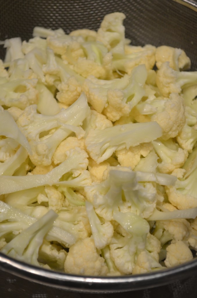 It all start with Cauliflower. Wash, cut and chop the Cauliflower. Food processor is the easiest way to do this. Since most people do not have one, it can also be done using a box cheese grater, use the second to the finest grater for a slight texture.