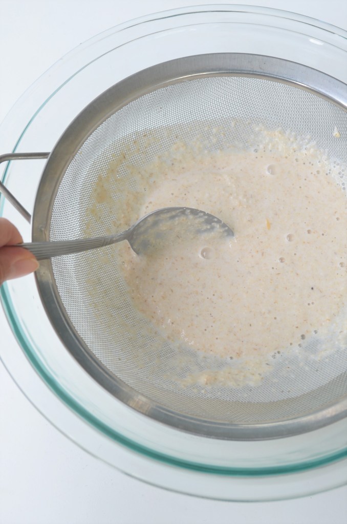 • Alternatively, if you do not have a nut milk bag, you can use cheese cloth or a very fine strainer. This however could affect the consistency of the oat milk.