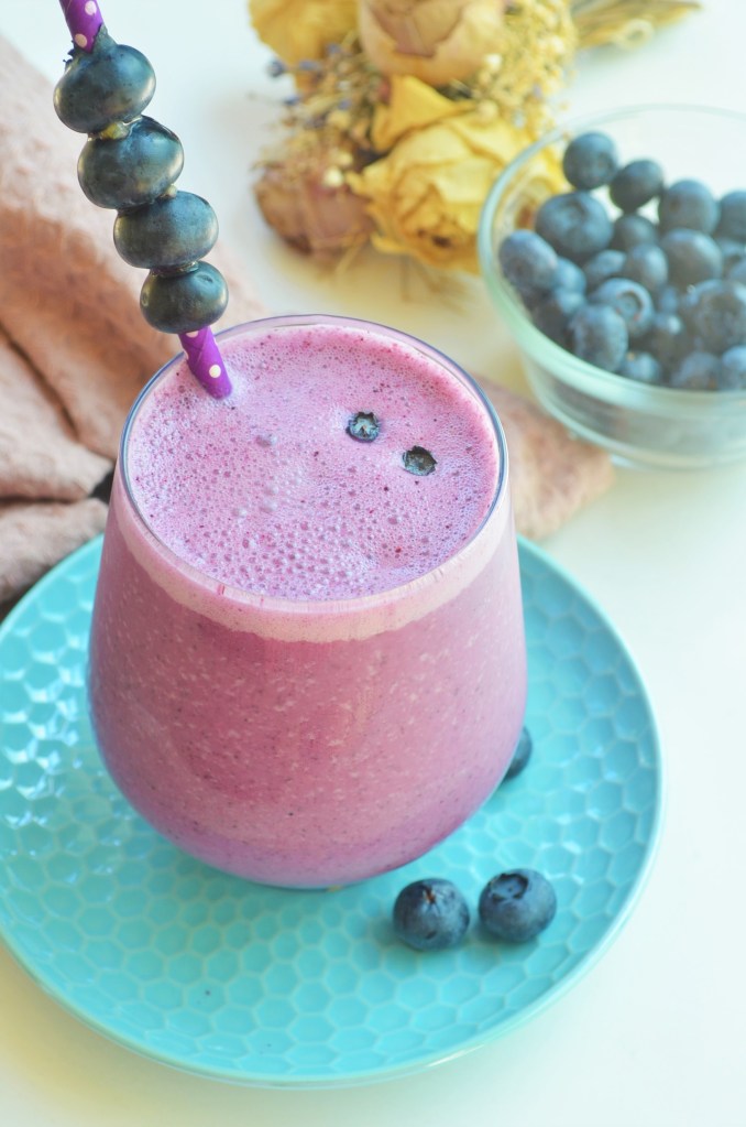 To get a nice texture and consistency, I used frozen Blueberry. If you do not like drinking cold drink in the morning, you can use fresh Blueberry instead. Expect that the consistency will be a bit more runny than when using frozen Blueberry.