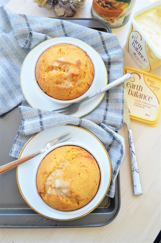 Now, if you do not have a ramekin dish, you can bake it in a regular muffin tin, you could make about 4 cornbread muffin in that size. The baking time will be different, bake at 350F for 19 – 21 minutes. This muffin will rise nicely, so make sure to fill only to 3/4 full regardless where you bake it.