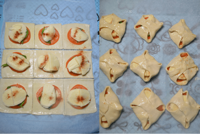 Published at 814 × 546 in Margherita Puff Pastry Bites: Easy Vegetarian Holiday Appetizer
