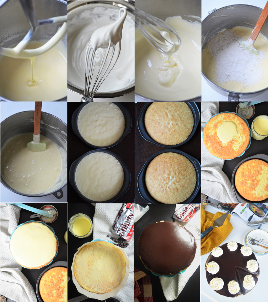 The base cake is a light and airy vanilla sponge cake. It uses the method of separating the egg yolk and whipping the egg white to give the cake a lighter fuller cake. Key thing to remember when making this sponge cake