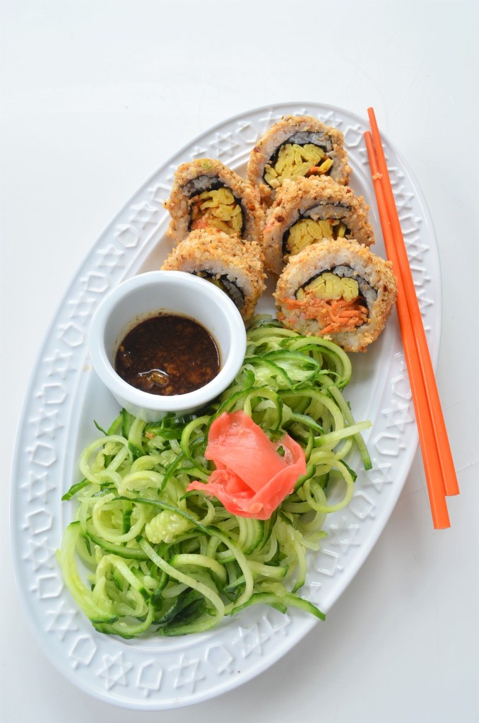 - Spiralize the Cucumber: I used a small portable spiralizer, but any spiralizer will work. If you do not have spiralizer cut the cucumber in thin sticks instead. if doing this, cut the cucumber lengthwise and scrape the center to remove the seeds. Then thinly slice the cucumber into sticks.