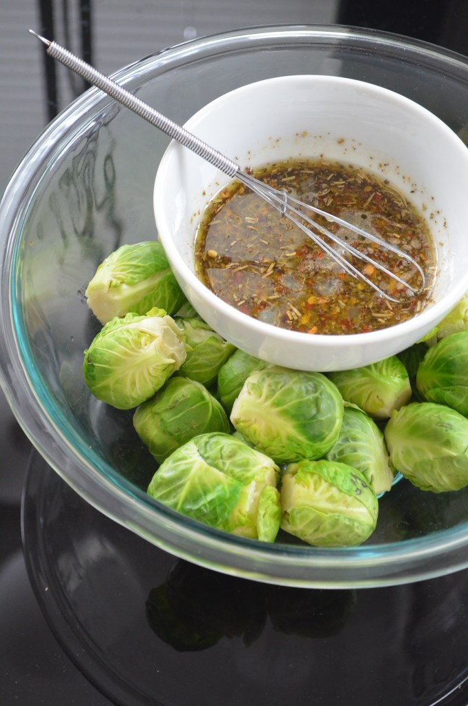 - Pre-Cook Brussels Sprout: Place the Brussels Sprouts into a large, microwave safe mixing bowl. Microwave on high for 3 minutes (more or less depending on the size of the Brussels Sprouts). Drain anf excess water (if any) and let cool for few minutes.