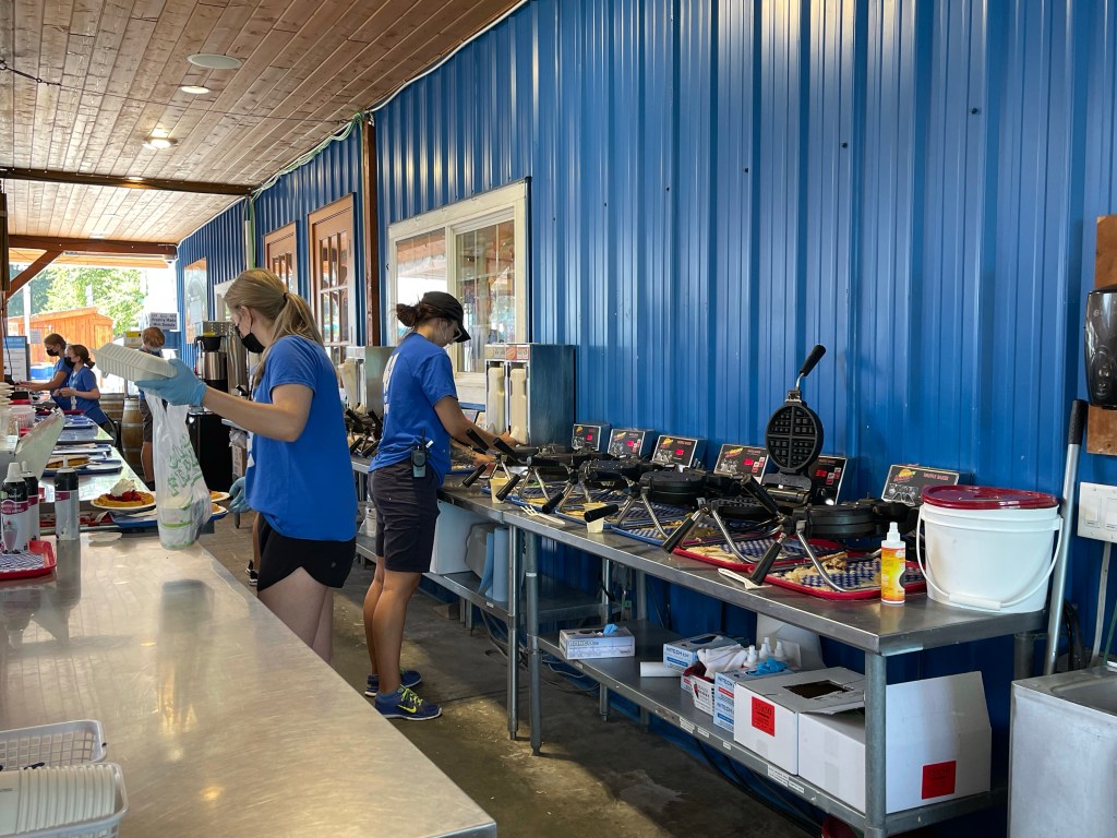They have a long table set-up for all the waffle maker, and I noticed that the batter is on a dispenser, like a water jug dispenser. They use a small plastic cup 3/4 full to measure each piece of waffle. On the other side, they have the syrup and containers of fresh Berries. It was an efficient set-up, everything needed to make it is within reach.