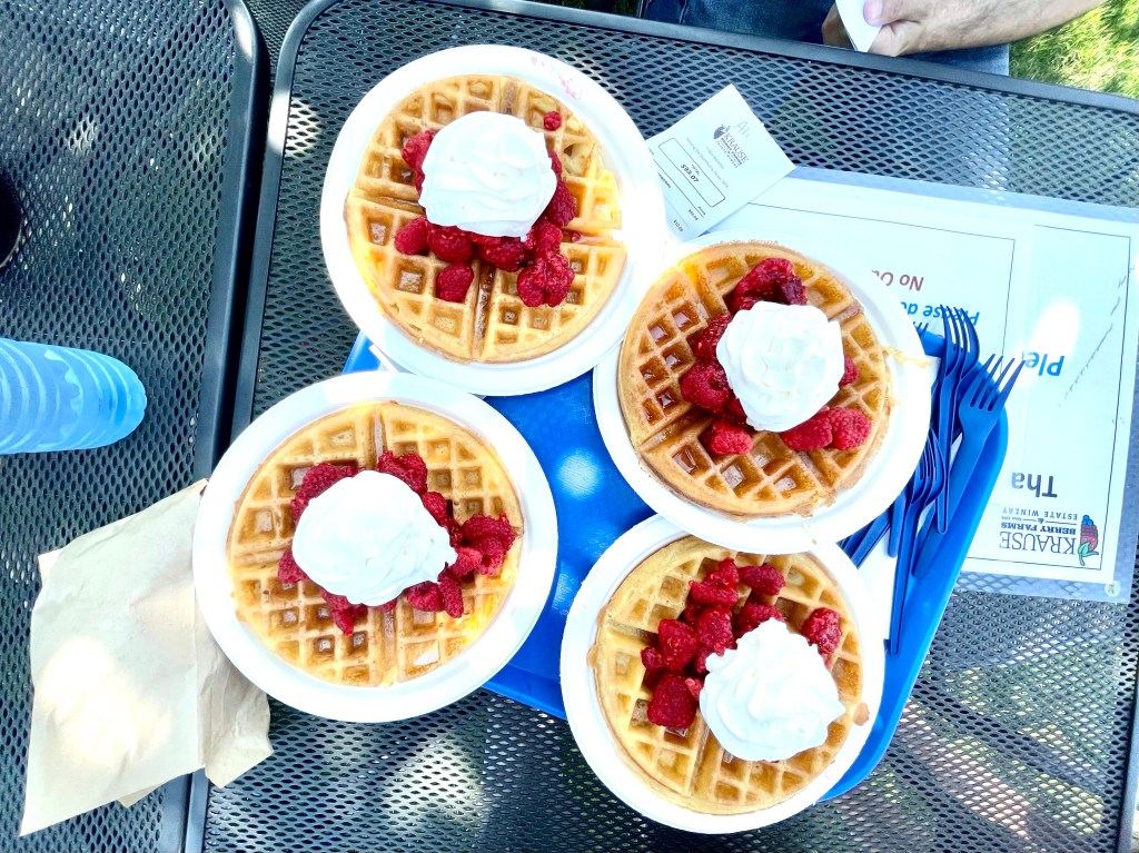 I actually enjoyed standing waiting for our order while watching the never ending orders of waffles being served. The only thing that I would really love to have to seal the deal is some extra syrup, even if I have to pay for it. I always find Raspberry more tart than Blueberry and Strawberry 🍓 and for me it requires a bit more syrup to balance the tartness. I would really love to try Blueberry next tine