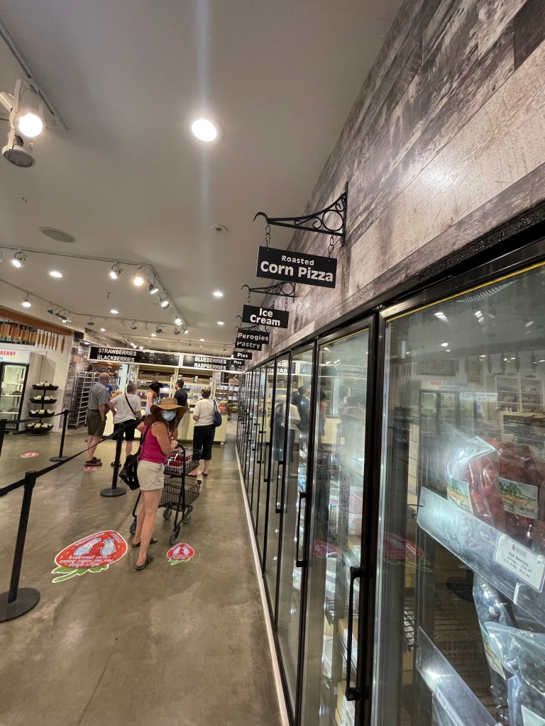 Along the sides of the market area are the standing freezer for the frozen products. From unbaked assortment of pie, ice cream, pizza, frozen Berries , beverage, perigee and even fresh eggs. I had my eyes set on the frozen roasted corn pizza but the line up for payment was ridiculously long, maybe next time.