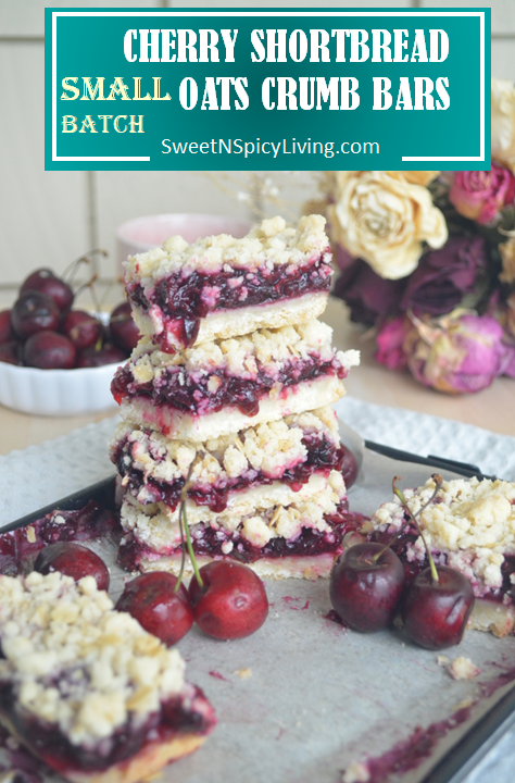 Published at 474 × 720 in Small Batch Cherry Shortbread Oats Crumb Bars