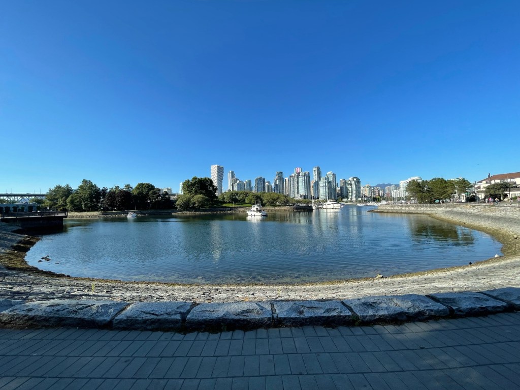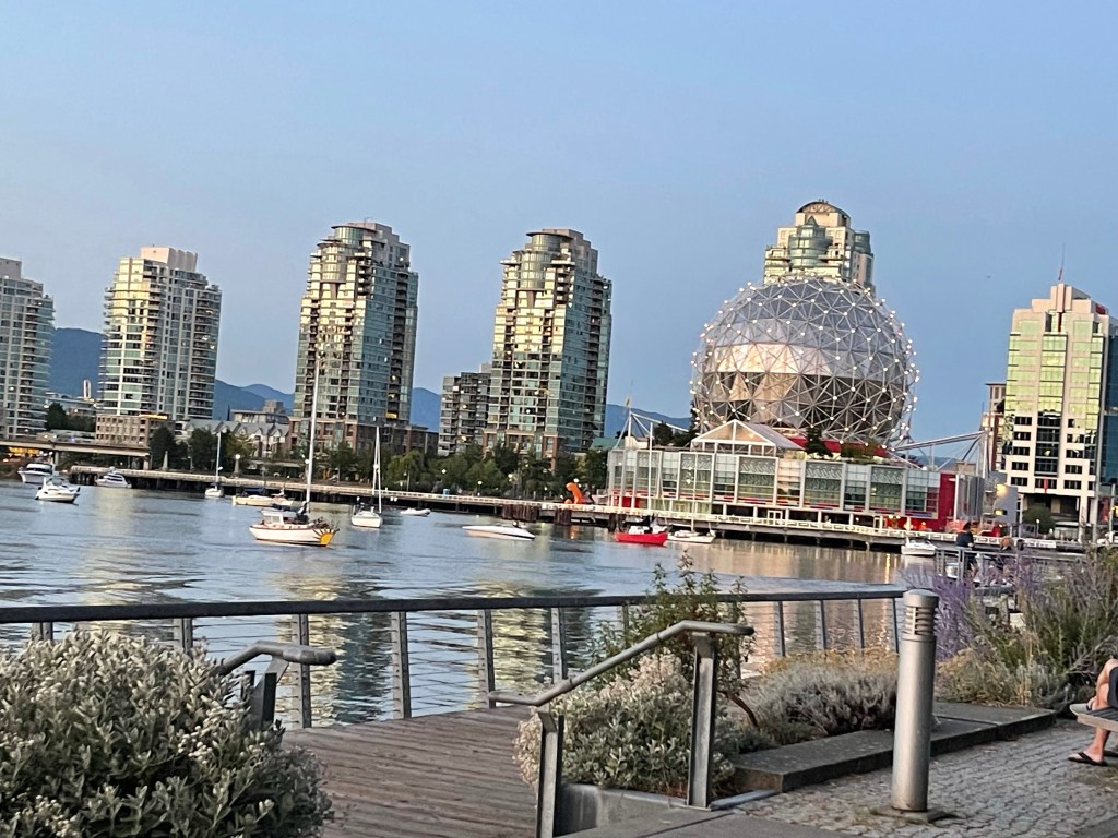 My last activity is a short walk ending at Science World in Olympic Village. There is a dedicated paved walking path at the back. The view was stunning, and for me is a nice way to end my visit to Granville. I often stop at this spot to admire the view.