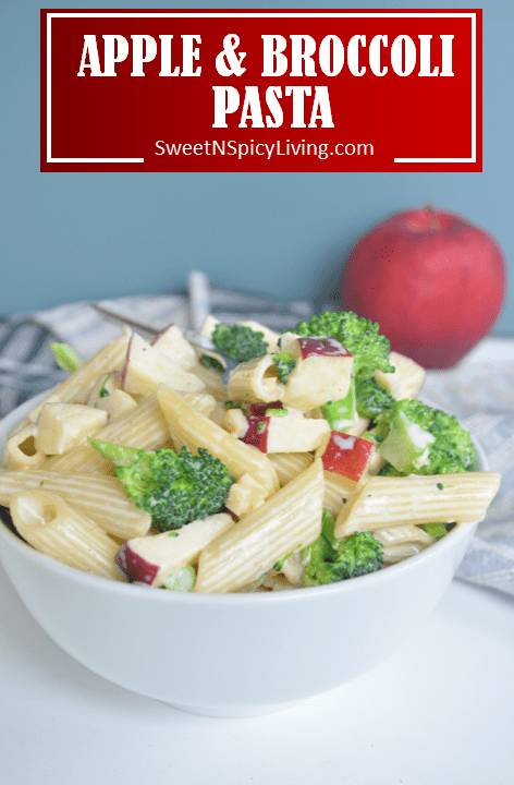 A simple pasta salad with amazing delicious flavor and texture, a nice sweet and creamy dressing and nice bits and pieces of steamed broccoli and chunks of delicious crunchy apple, meet my Apple and Broccoli Pasta.