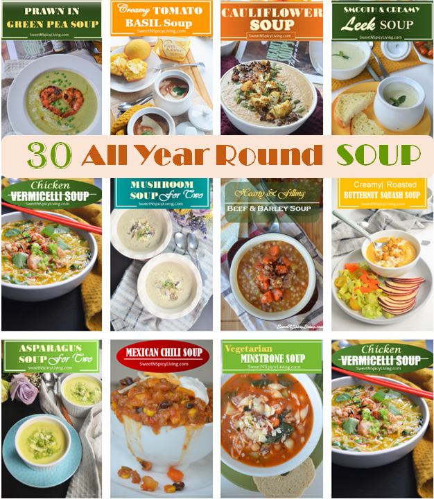 Sweet treats, cakes, chocolate and cookies are great, but we need more than just that to keep us warm and going. Soup is one of my go to comfort food during cold rainy or snowy days. They keep me comfy, cozy and my tummy happy. I’ve made and shared quite a lot of soup in my website and so I thought it is a good idea to gather them up together in one post to help you have an easy selection of what soup to make. I gathered 30 of my soup recipes in my website and listed them all below. I am hoping that this will give you an idea of what soup to make to keep you warm. Check them out and let me know which ones you like.