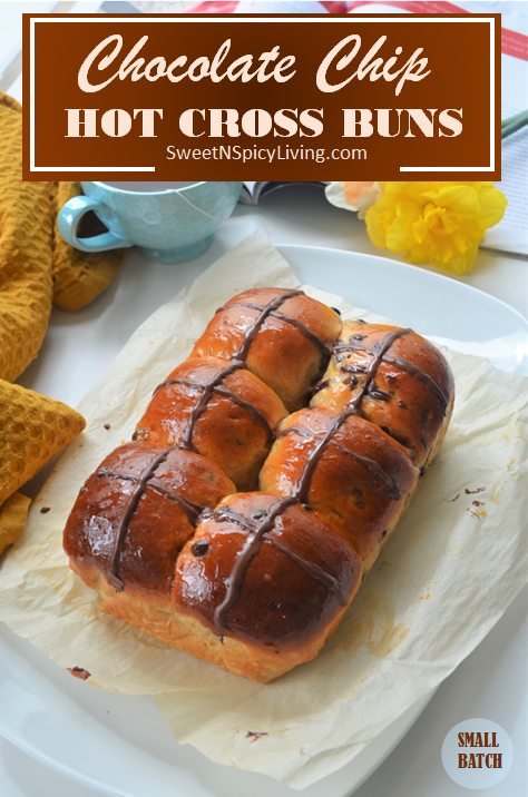 A sweet Hot Cross Buns variation loaded with bits and pieces of chocolate chips and a hint of cinnamon, let me introduce you to Chocolate Chips Hot Cross Buns. An indulgent decadent take on hot cross buns, definitely not traditional but absolutely delicious. This is one of those bread rolls I cannot simply stop eating. The bread itself is so soft and fluffy, and the swirl and melting chocolate chips inside is simply irresistible. I hope you’ll give this variation a try. You don’t even have to call it ho cross buns, call it Chocolate Chip Bread Rolls it doesn’t really matter. It’s the taste that counts.