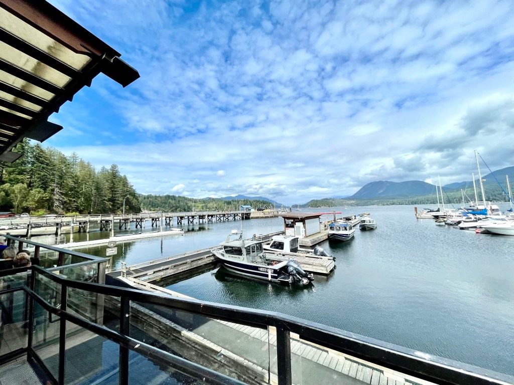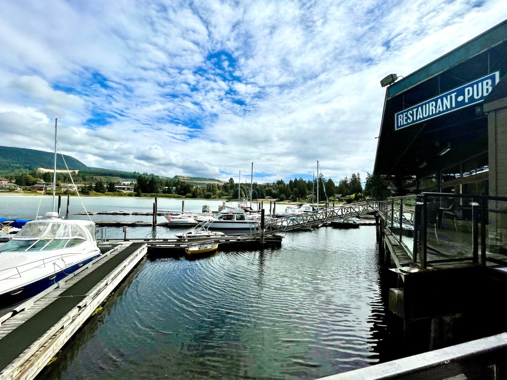 This restaurant is located at xxx, which is about 30 -35 minutes away from the Ferry and just 10 minutes away from my friends house. The pub was a waterfront restaurant with an amazing patio over looking the water. This is also the same area where the float plane terminal is located. You can take. plane from Downtown Vancouver to this place.