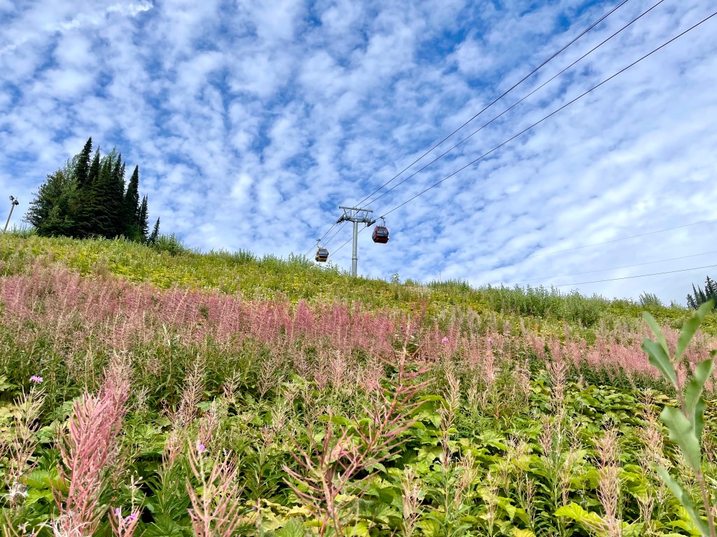 The Des Schumann Summit Express Gondola is a gondola ride that takes visitors up to the mountain is about 8 minutes ride. As you ascend the ride, you will have the view of the surrounding mountains, trees, wild flowers, bikers, and people picking berries. This gondola is the one used by most visitors who are just visiting the area. Mountain bikers have a separate open chairlift that are dedicated just for them. You can actually see the chairlifts from the gondola as it ascends, or when you hike up the mountain.