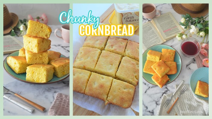 All time favorite Cornbread made better and chunky! With this variation, you will get bits and pieces of real corn in every bite. The bread is soft, moist and the outside and edges have a nice crunch. It is creamy with subtle sweetness and delicious corn flavor. You are going to love this, every bite of it. Promise! 🙂