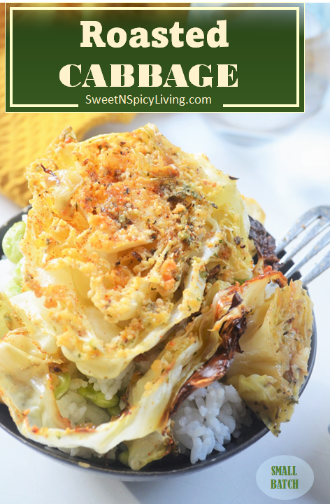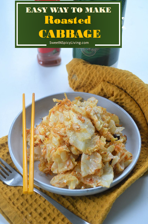 If you are looking for easy and flavorful way to cook and serve cabbage, this is it!! Roasting Cabbage made easy with this simple method. I’ve tried several ways of cooking cabbage, from the famous Cabbage “Steak”, Roasted Cabbage Wedges, Sautéed Cabbage and more, but this one is so far my favorite. It is so easy, the most the you need to do is to cut the cabbage into bite size pieces and seasoned it with spices, cheese and oil. Then it goes to the oven for 20 minutes, just like that and you have a delicious Cabbage meal to serve. Eat it on its own, or serve it with steamed rice. You can also top it with some sautéed minced meat, seafood or tofu for vegan option. This taste really good, you’ll thank me for this.