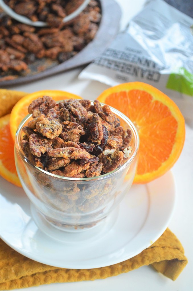 Crunchy, lightly sweetened and packed with natural fresh Orange flavor. This Candied Orange Pecan with Dried Cranberry is great for snacking or as toppings for salad. A snacking item that is hard to stop eating once you start.