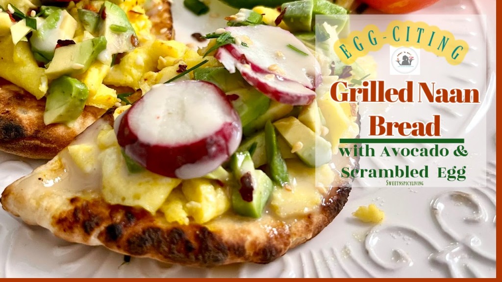 - Transfer the egg on top of grilled naan bread. top with diced or sliced Avocado and sliced radish. Sprinkle with sesame seed. You can use any topping you like.