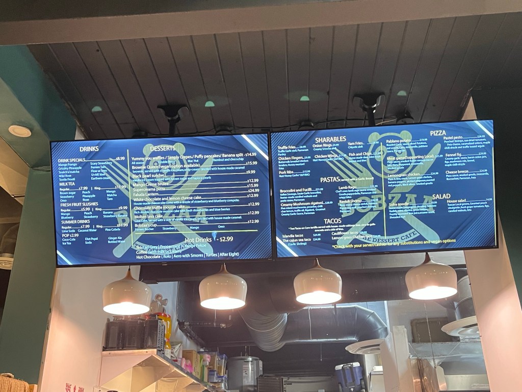 This dessert place offers more than just bubble tea. They also have meals and snack like pizza, pasta, french fries, salad and desserts. We went here for dessert and here is what we got.