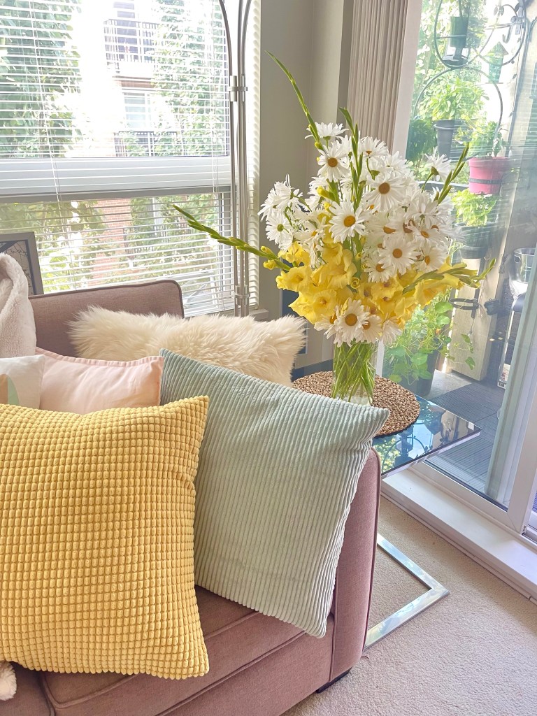 They’re great as fry flowers for long vase like what I have here. I paired it with the lovely Shasta Daisy which cannot stop from growing more and more every year. The flowers itself are also bigger this year and the steams are quite heavy and thick. The combination of these two are perfect. The vibrant yellow color of Gladiolus pairs nicely with the bright white color of Daisy and the vibrant yellow center.