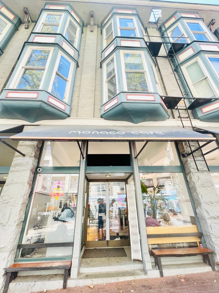 The location of Monaco Cafe is perfect! It sits almost in the middle Gastown. The shape of the Cafe is quite unique. Because of the odd location, the cafe is building is triangular in shape.