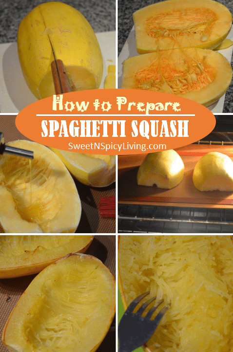- Prepare the Spaghetti Squash. Scrape the “meat” and set aside. See the discussion above on how to cut and prepare Spaghetti Squash.