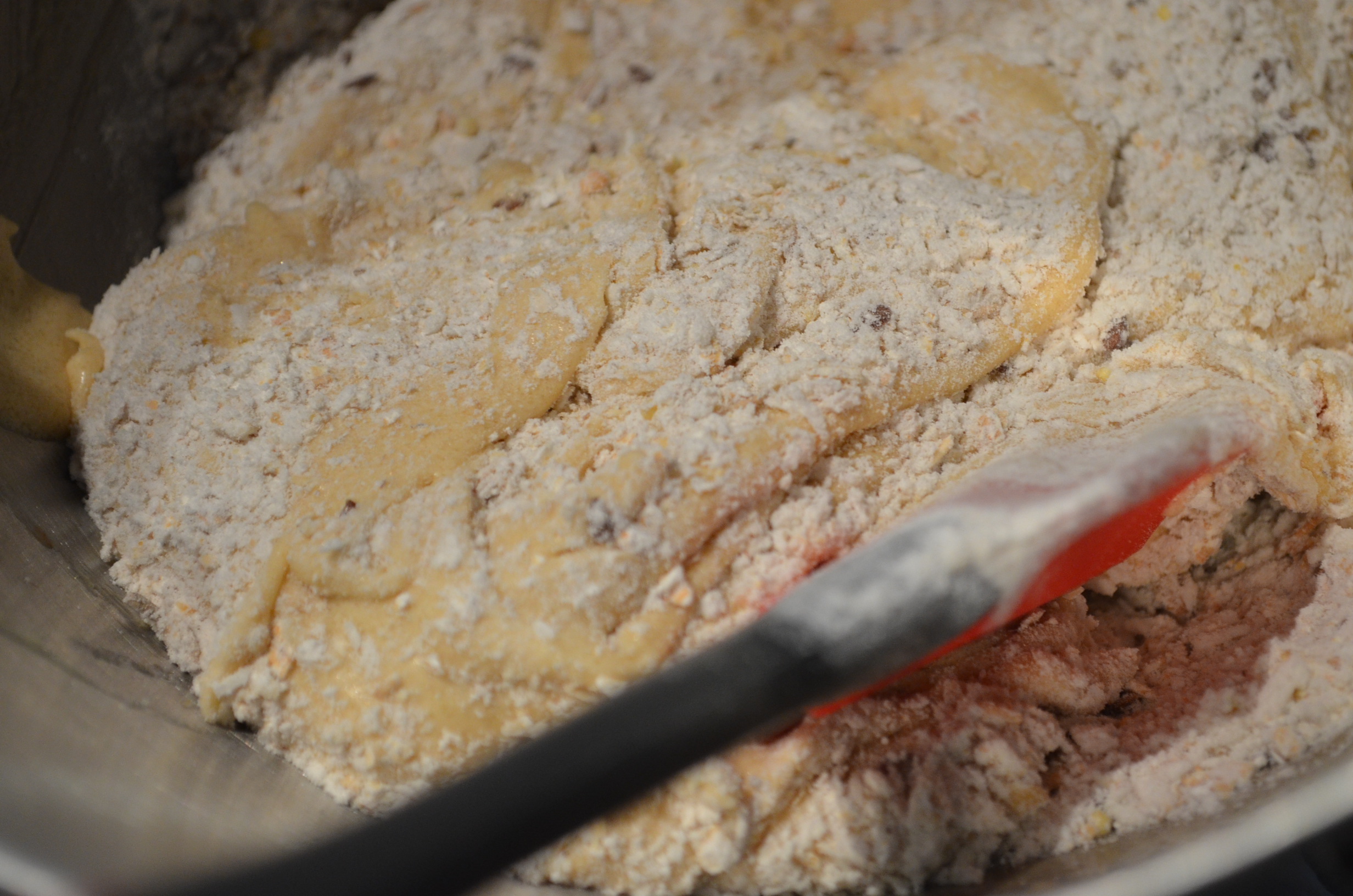 Add mixed dry ingredients to oil,sugar and egg mixture