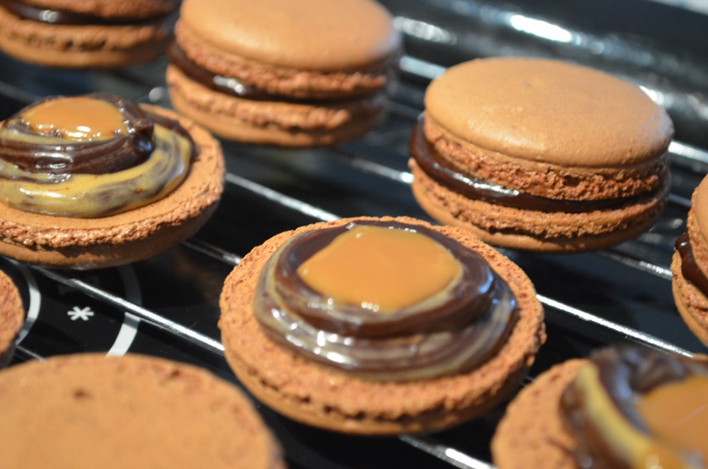 10. Sandwich 2 same-size Macarons with 1 teaspoon filling of your choice (Chocolate Ganache, Vanilla Buttercream Frosting , Strawberry Jam, Raspberry Jam , Cookies and Cream Buttercream Frosting, Pastry Cream etc.)