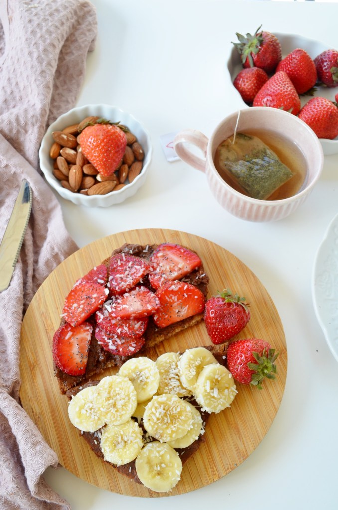 This is basically what this post is all about. This hummus on toast is so good. My favorite fruit to use are Strawberry & Banana. During the Summer when we have an adundance of Strawberry, this is one of my go to use of fresh Strawberry.