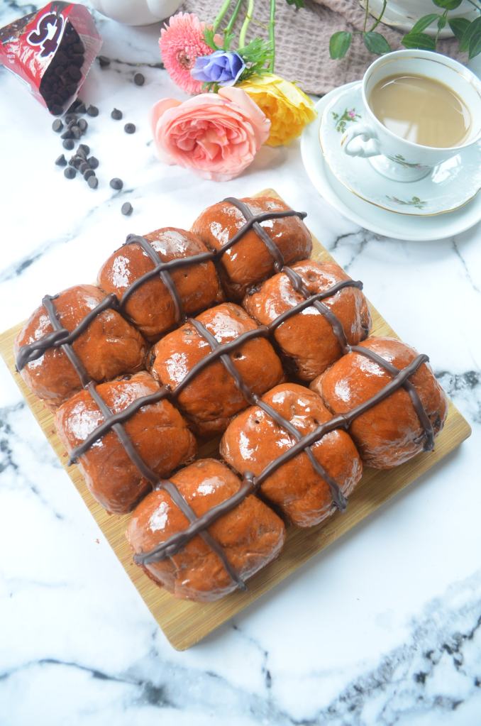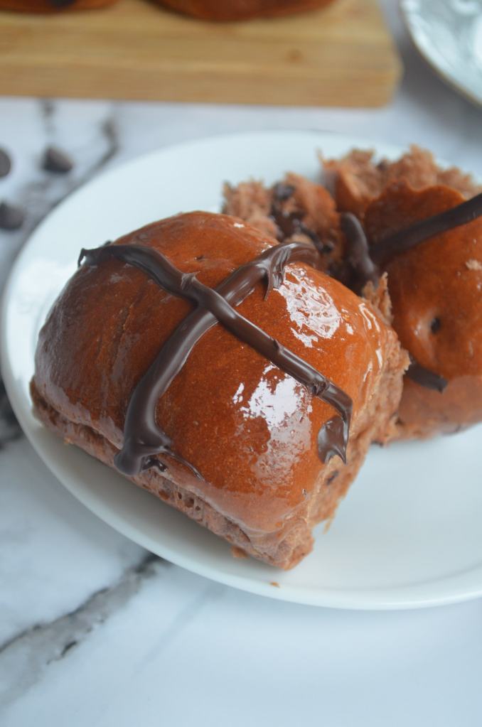 Because the Chocolate Chip Hot Cross Buns was a total hit, I knew I had to make a chocolate variaton of it. That is what I am sharing with you in this post. A Triple Chocolate Hot Cross Buns, decadent indulgent chocolate buns that you will not be able to resist.