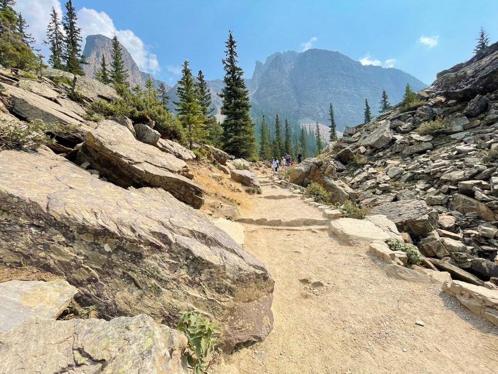 It was a nice easy hike although it was all uphill. I can assure you that the view from the top is worth it. The view from the top was breathtaking and gave more appreciation of the Lake Moraine.