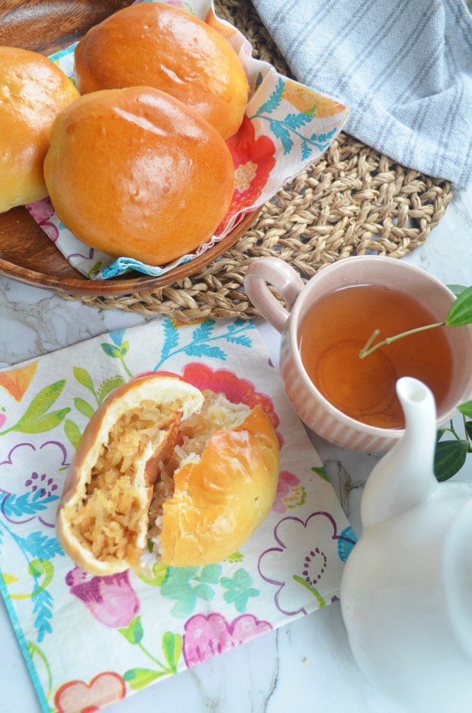 The filling combines desiccated coconut, sugar, butter, and water, cooked into a fragrant mixture. The combination of sweetness and slight chewiness from the coconut makes it irresistible. This is almost like a desserts buns which pairs well with coffee or tea.