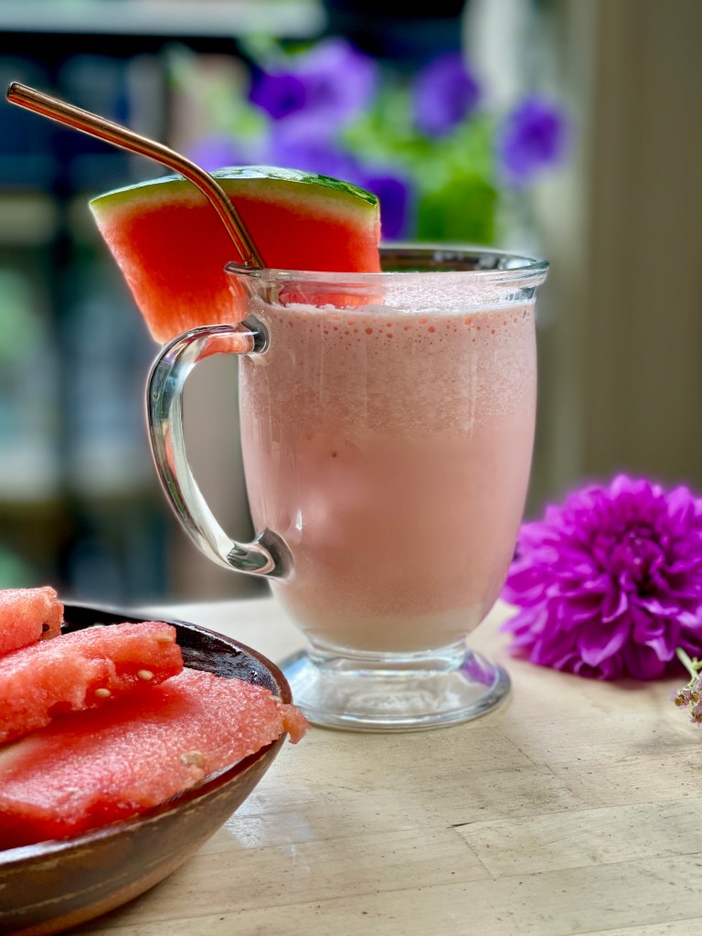 Blend everything until smooth and serve chilled. It’s like a smoothie-meets-lassi with a watermelon twist. Great for breakfast, post-workout, or a midday pick-me-up.