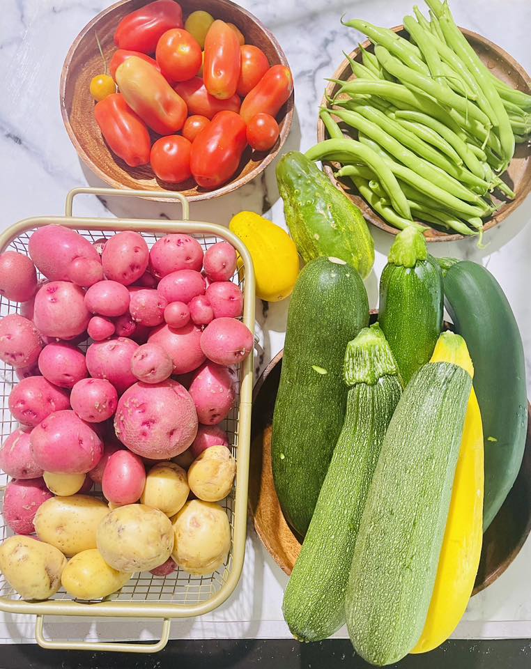 Time flies! It was April when I did my last garden update, and at that time the garden was bare .. no flowers, no plants, no vegetables. I was hoping to do an earlier post to show the Spring and Summer flowers as well as the abundance of Summer produce but life got really busy. I cannot catch-up with all the backlogs I have, but I made sure to keep the photos and videos to share with you soon. Hopefully, sooner than later. For now, let’s see what he have going in the garden. Summer is at its peak, giving us abundance of Summer fresh produce. From the all time favourite tomato, to the prolific Zucchini and beans, fragrant and fresh herbs, and the strong Kale and Swisschard.