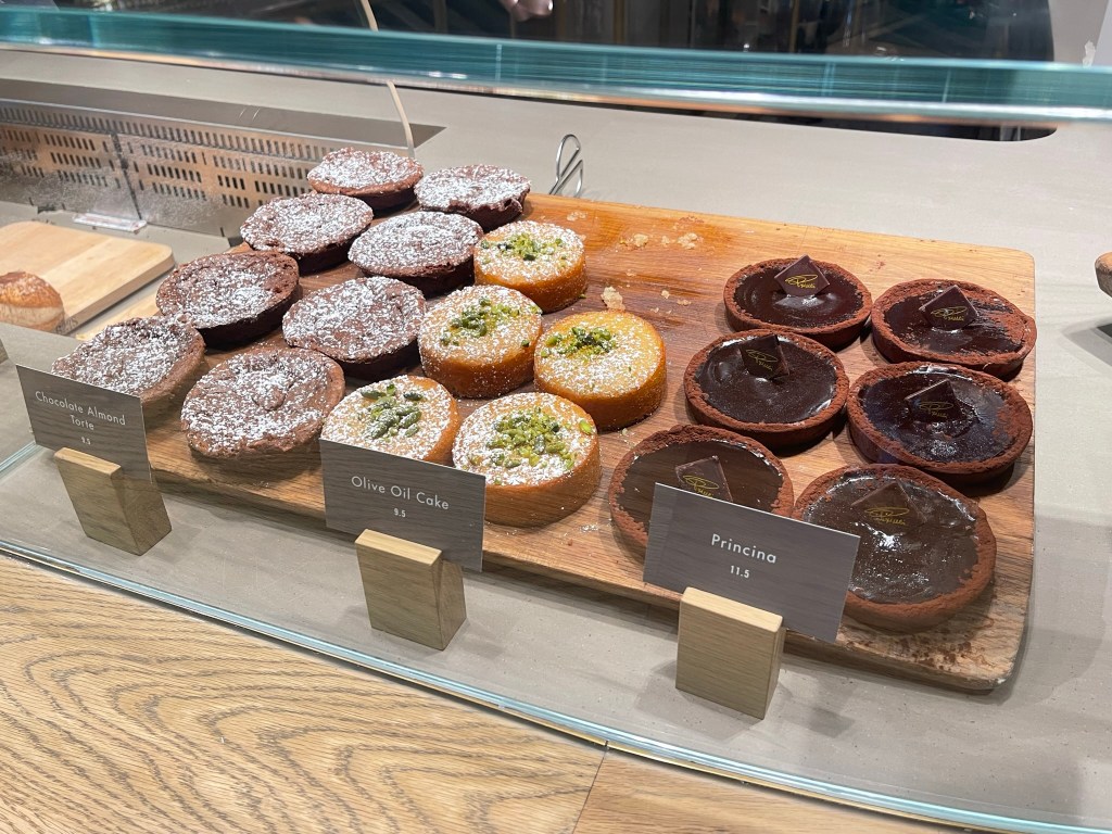 You can find varieties of pastries, fresh croissants, cannoli, cheesecakes and savoury items like pizza and pasta.