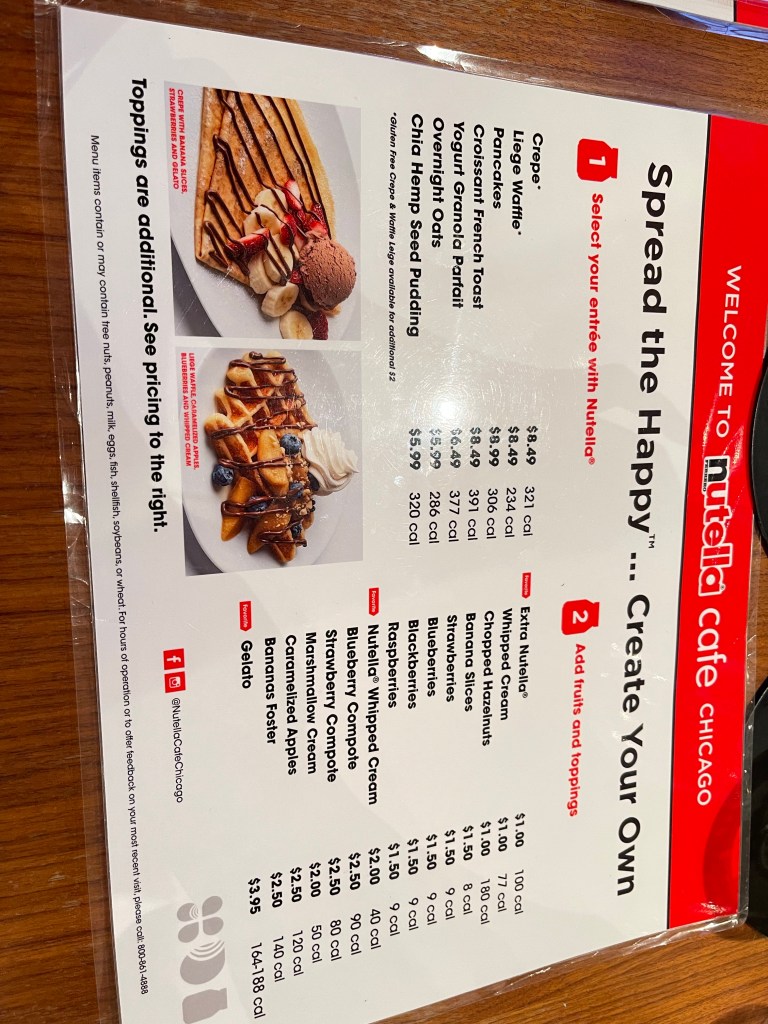 They have overnight oats, chia seed pudding, gelato, pastry and fruits .. all with Nutella on or in it.