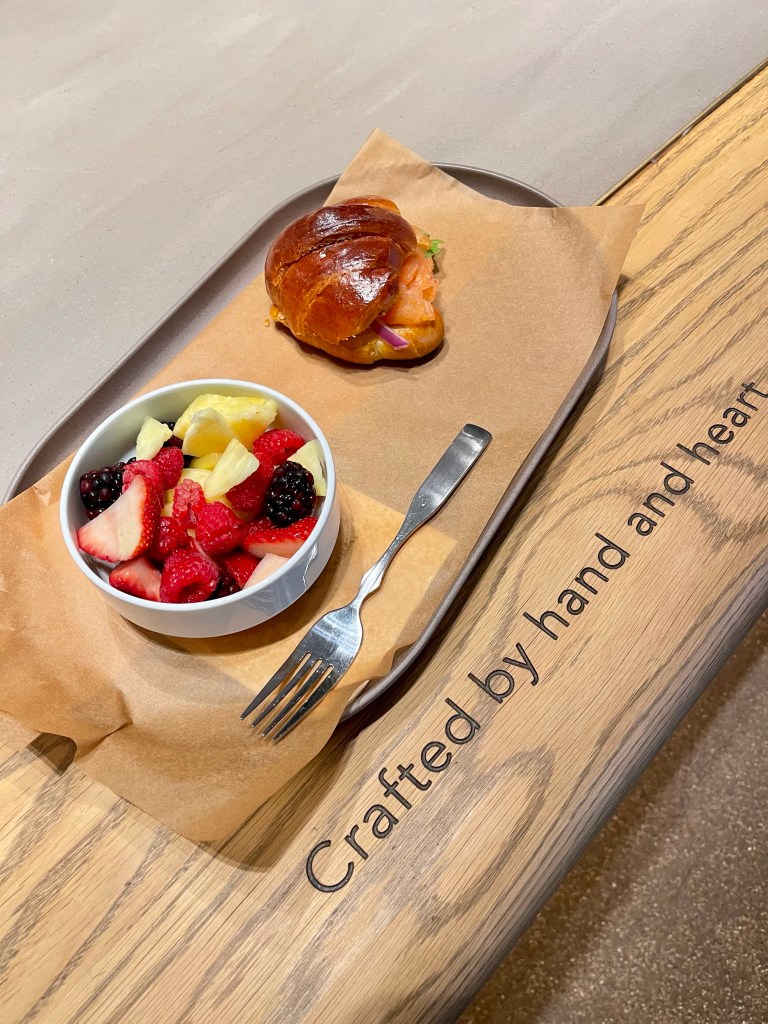 Salmon Croissant 9.50 USD + Fruit Salad 5 USD