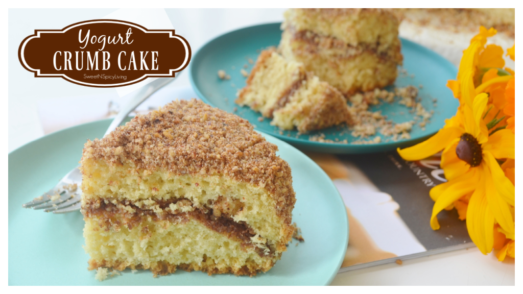 Crumb toppings are a wonderful addition to cakes. They add texture and a burst of flavor. Our Yogurt Crumb Cake uses a mix of brown and granulated sugar, cinnamon powder, and toasted pecans. You can easily make it by pulsing everything in a food processor, or you can do it manually by chopping the pecans and mixing them with the other ingredients.