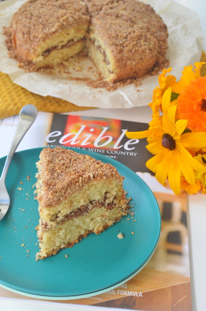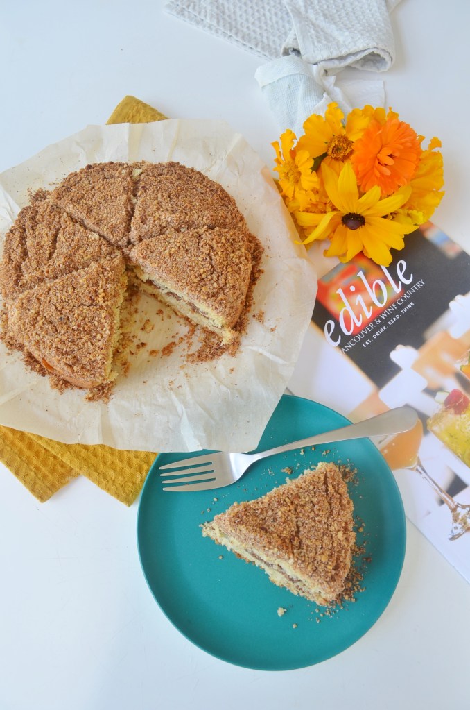 Our cake uses pure vanilla extract, but you can easily swap it for lemon or orange zest if you prefer. The crumb topping features cinnamon powder, but cardamom powder is a great alternative for a different flavor twist.
