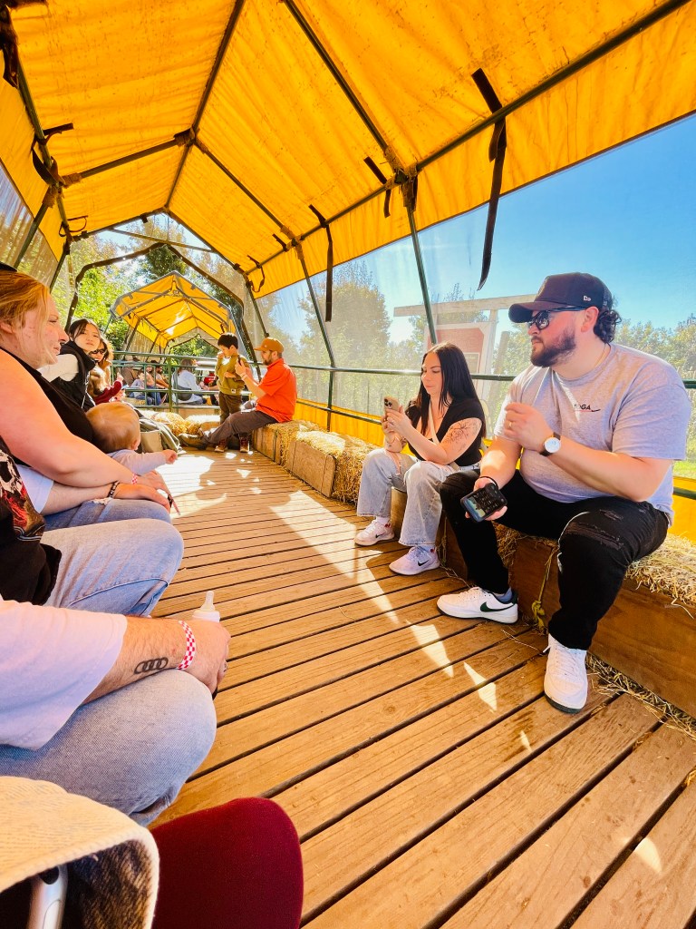 If you purchased the ticket with the hay ride, go take it! Hop aboard the tractor-pulled wagon and let it take you through rows of apple trees, pumpkin patches, and cornfields. It’s bumpy, breezy, and totally worth it. The views are pure postcard material. That hay ride is only about 10 minutes. It goes around the pumpkin patch and the apple picking area.