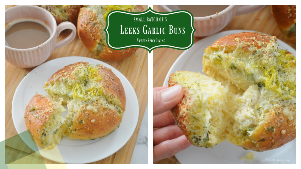 So I went there and there is was, sitting inside the counter waiting for me to get my hands on it. I ordered it along with a hot drink and sit comfortably and quietly in the corner enjoying every bite and sip of my drink while carefully analyzing how I can make it home. Even before I left the cafe, I’ve already decided that I will make it at home, final decision! And so I did, and here we are looking at this mouthwatering Leeks & Garlic Cream Cheese Buns, my version. Curious about how to make them? Let’s dive into all the delicious details.