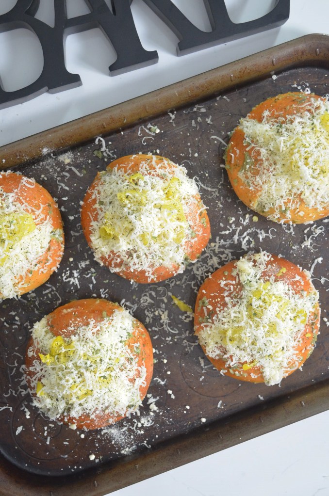 - Parmesan Cheese: Transfer in a pan lined with parchment paper. Add some chopped/sliced pickled jalapeno peppers. Sprinkle with Parmesan cheese powder. This is optional but highly recommended.